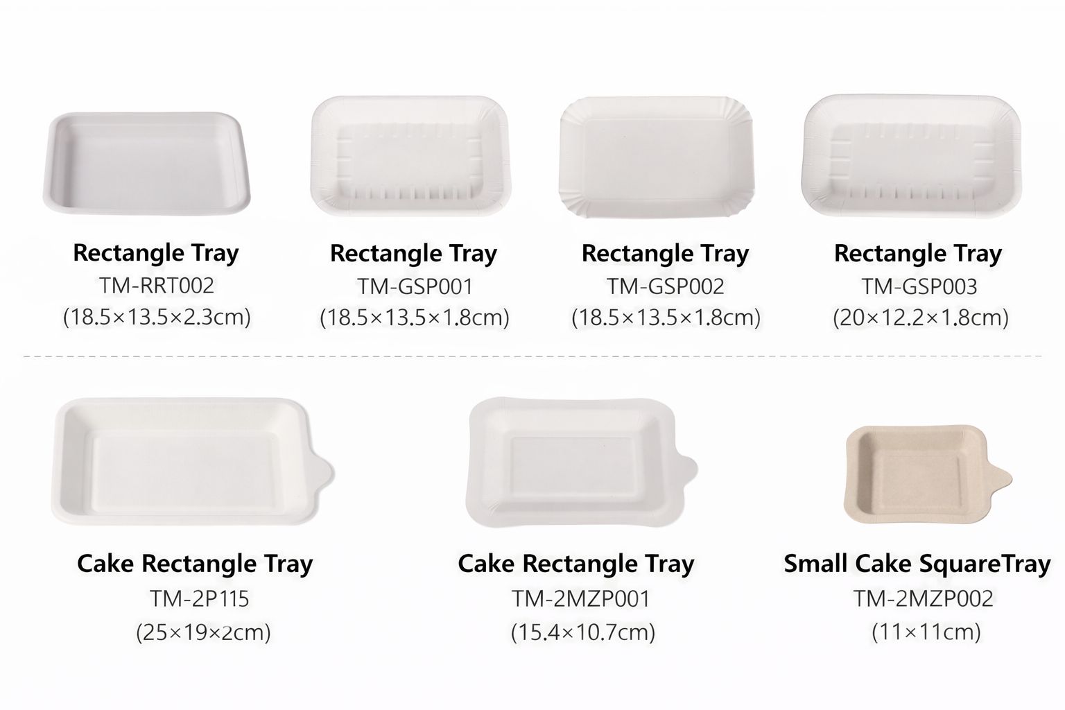 صواني كيك مستطيلة مصنوعة من ألياف قصب السكر الطبيعية، صديقة للبيئة، مصممة لتقديم الحلويات والكيك بطريقة أنيقة وعملية، مناسبة للمخابز والكافيهات ومحلات الحلويات.