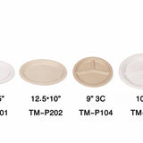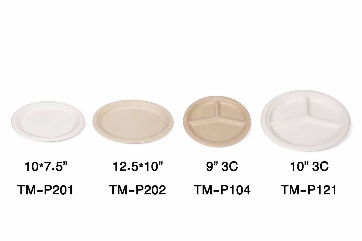 صحن دائري مصنوع من آلياف قصب السكر (صديق للبيئة) بعده مقاسات