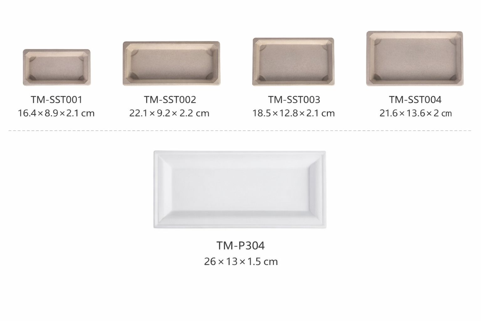 صحون تقديم مستطيلة بتصميم عملي وأنيق، مصنوعة من ألياف قصب السكر الطبيعية، صديقة للبيئة، مناسبة لتقديم السوشي، المقبلات، الحلويات، والأطعمة الجانبية في المطاعم والكافيهات