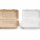 علبة تغليف مفردة (6 × 9 إنش) مصنوعة من ألياف قصب السكر الطبيعية، صديقة للبيئة وقابلة للتحلل، مناسبة للوجبات، مثالية للمطاعم، مع إمكانية طباعة الشعار حسب الطلب.