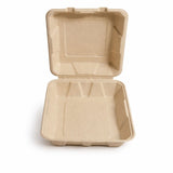 علبة تغليف مفردة (9 إنش) مصنوعة من ألياف قصب السكر الطبيعية، صديقة للبيئة وقابلة للتحلل، مناسبة للوجبات، مثالية للمطاعم، مع إمكانية طباعة الشعار حسب الطلب.